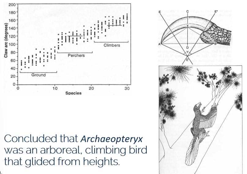 → Archaeopteryx evolved in the trees, perched and used wings to climb