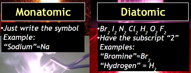 Monatomic anions have the ending of the element name changed to“-ide”