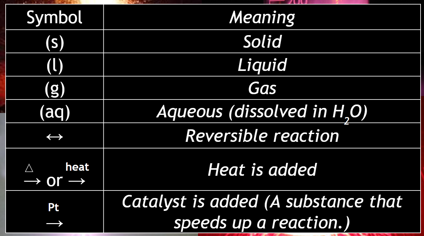 Law of Conservation of Atoms: There must be the same number of each type of atom before the reaction as after the reaction.