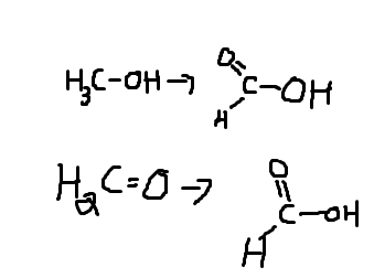 V tomto procesu se methanol oxiduje na formaldehyd (HCHO)