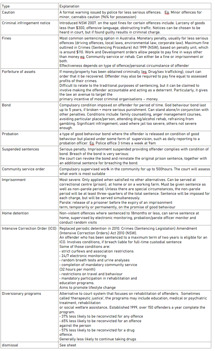 - Adjournment: sentencing can be delayed for up to 12 months to assess prospects or rehabilitation