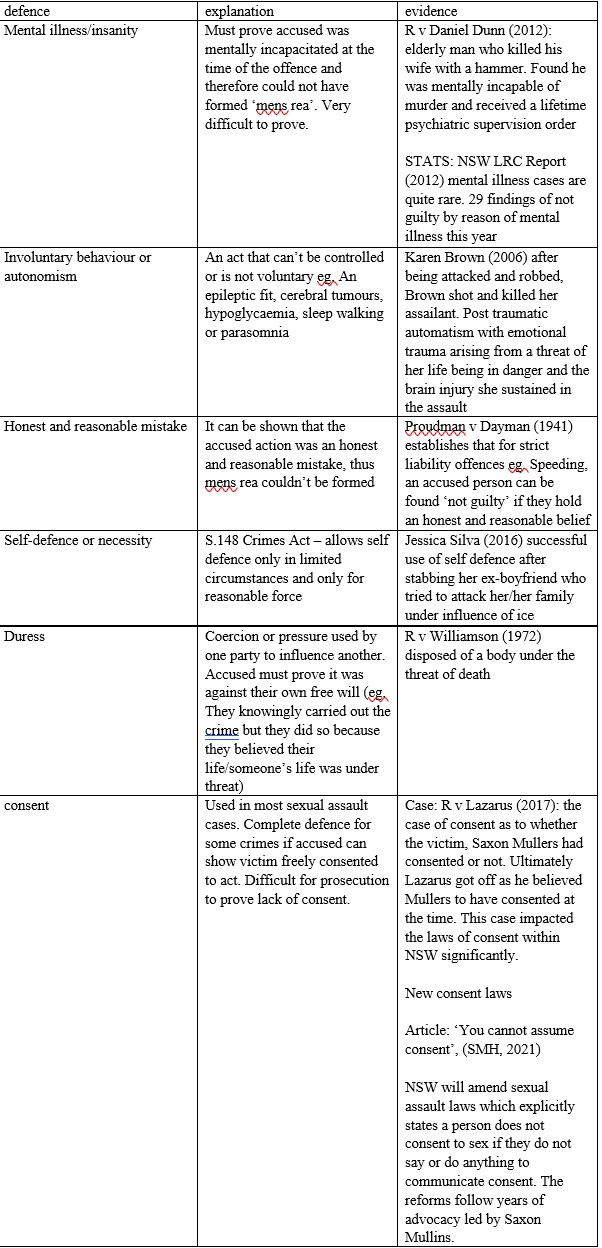 - Recklessness: the accused was aware their action could lead to a crime but chose to continue in that manner eg. reckless driving. Prosecution will prove a reasonable person would have realised the risk