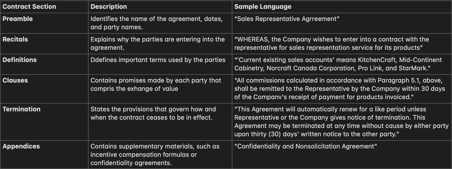 Many contracts follow a consistent structure and sequence, which generally includes: