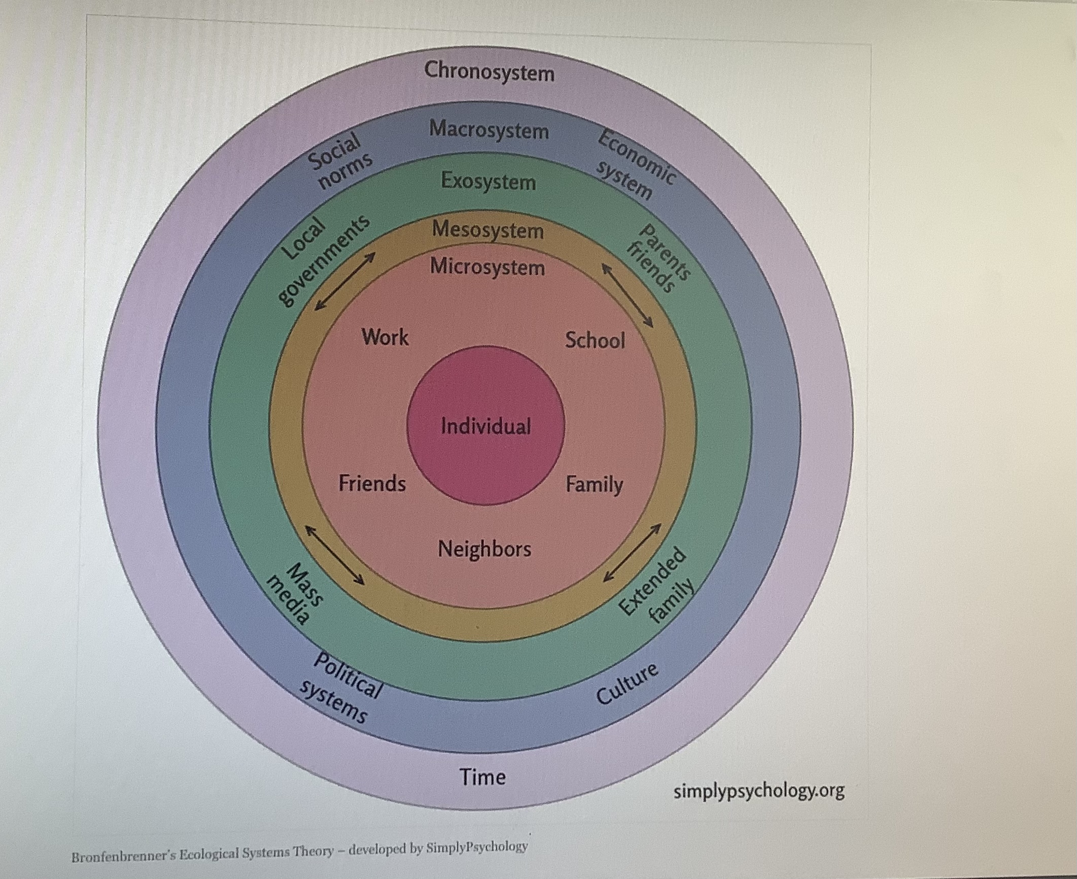 Macrosystem = cultural events that affect the individuals and others around them