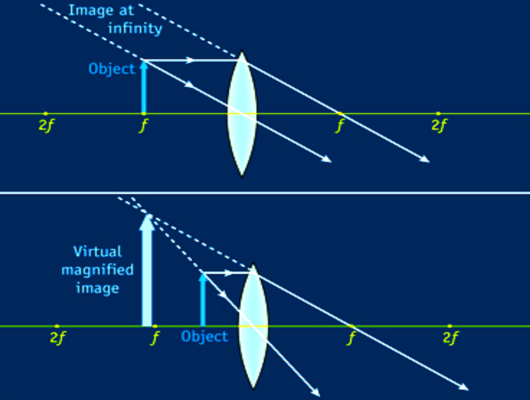 Virtual, upright, and diminished, on the same side of the lens as the object.