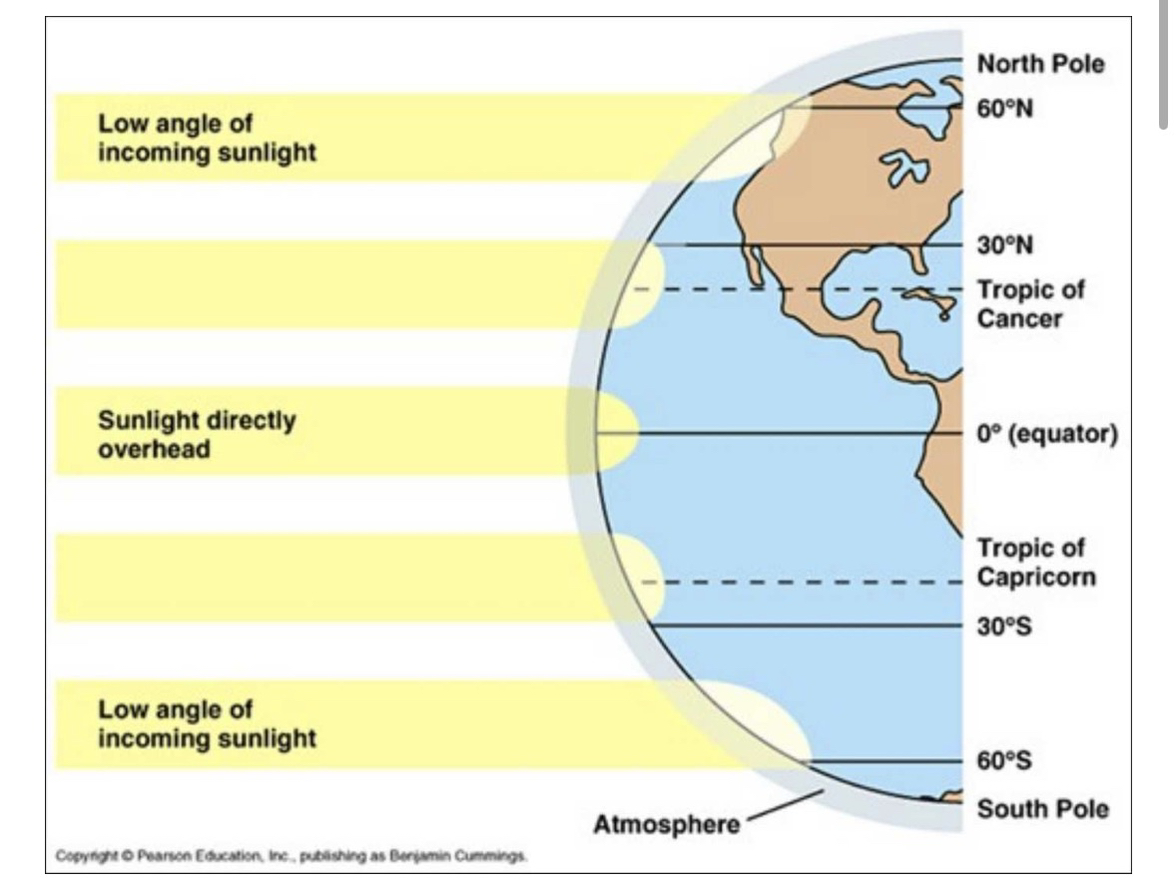 Much of the sun’s energy is absorbed in the tropics - acts as a source for heat transfer to energy-deficit regions.
