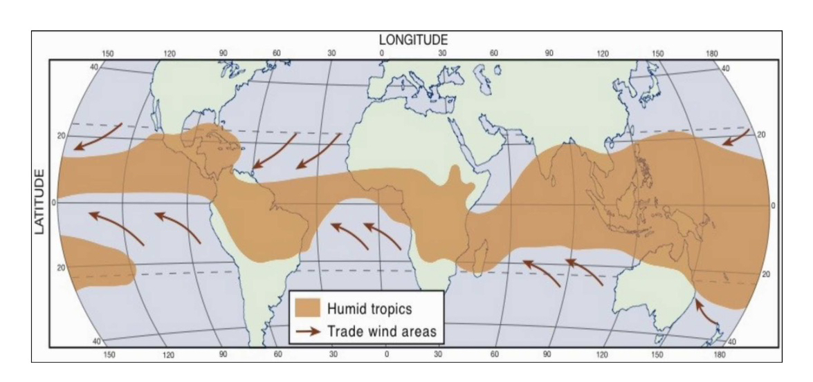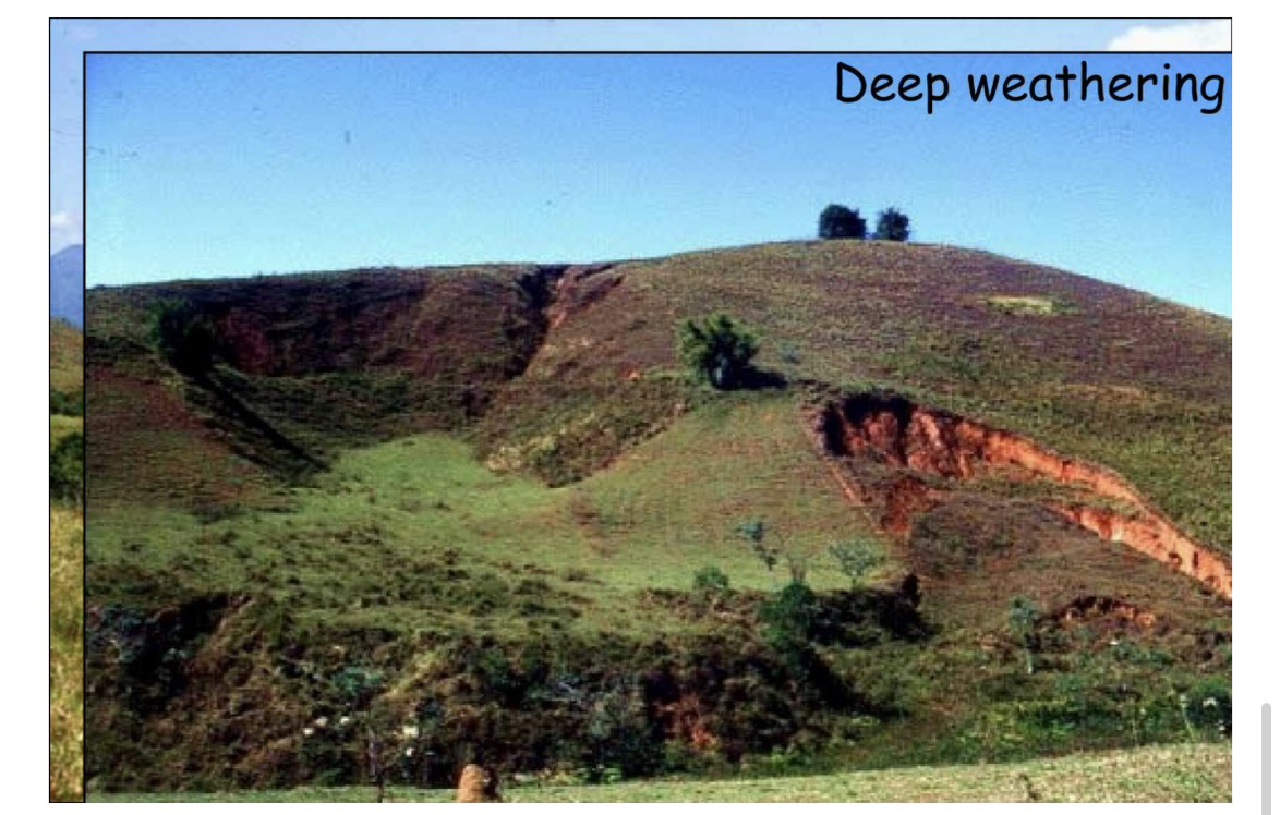 The humid tropics are associated with deep weathering caused by the higher activity rates of chemical processes at warmer temperatures when moisture is available.