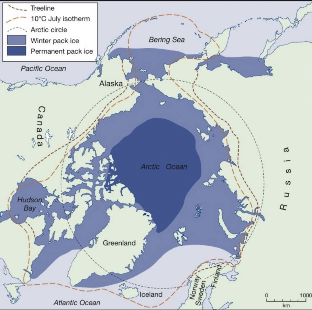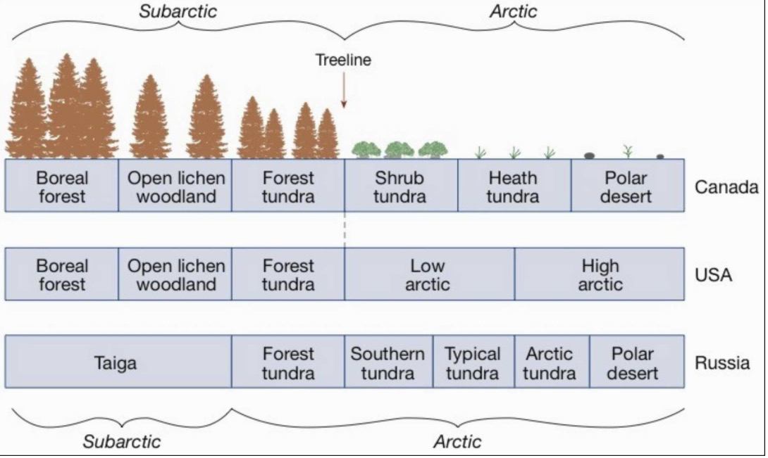 Short summer, harsh winter Vegetation-sparse, low Ground exposed, frozen
