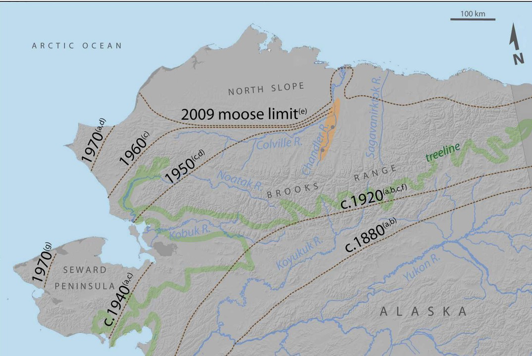 Range Expansion of Moose in Arctic Alaska Linked to Warming and Increased Shrub Habitat