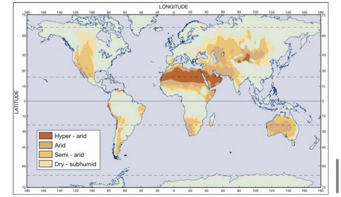 Approximately one-third of the Earth's land surface is desert, arid land with meager rainfall that supports only sparse vegetation and a limited population of people and animals.