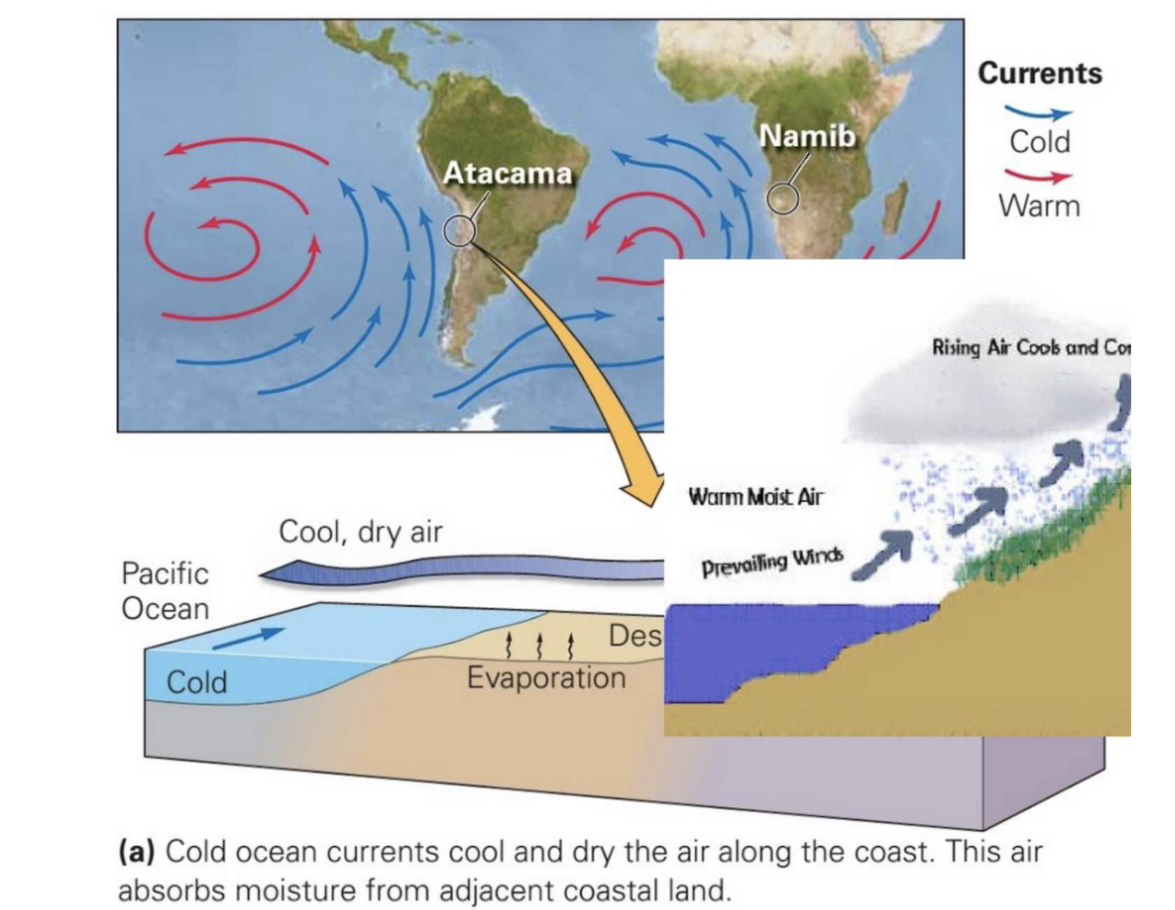 Cold oceanic currents can increase the aridity along some coastal areas.
