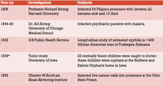 ==Examples of unethical research==: