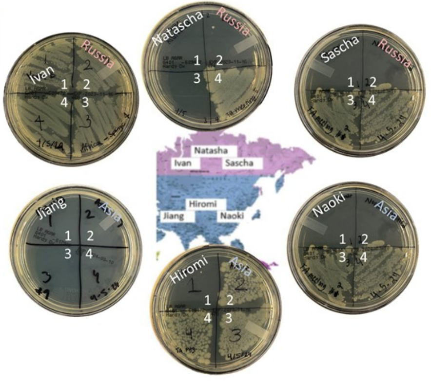 a plate will have smaller bacterial colonies since theyre competing for resources and have bigger ones at the end