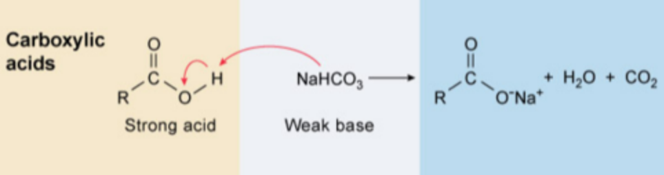 ==Carboxylic acids + 5%NaHCO3 → R-COO-Na+ + H2O +CO2==