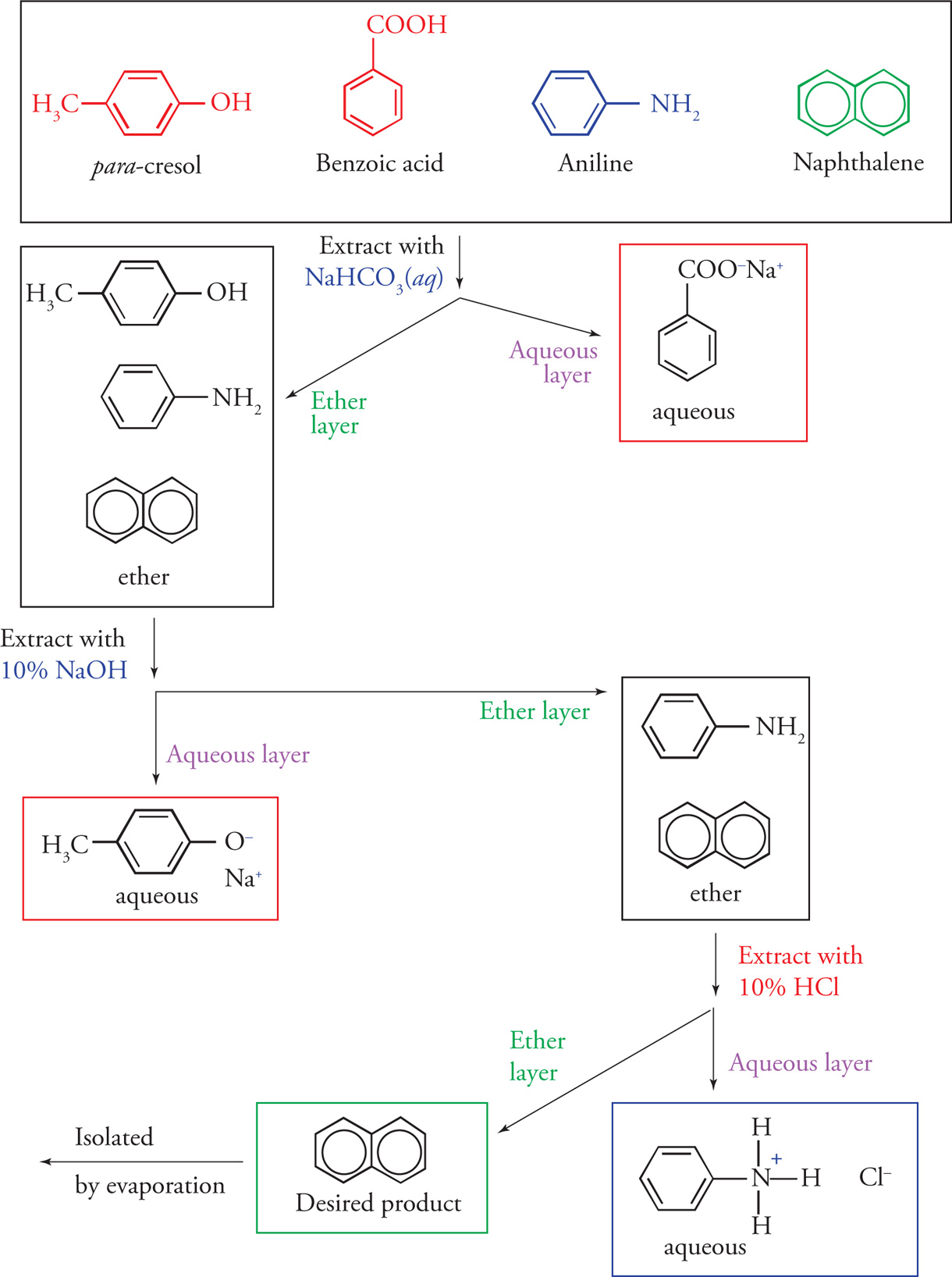 This treatment will protonate the basic functional group, forming a positively charge ion. The resulting cationic salts of these basic compounds are usually freely soluble in aqueous solution and can be removed from the organic compounds that remain dissolve in the organic phase