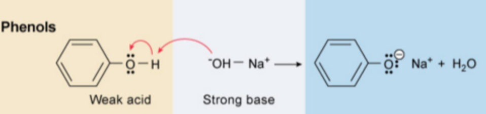 When phenols are present in a mixture and need to be removed, dilute sodium hydroxide solution (about 10%) will succeed in converting phenols into their corresponding anionic salts. Anionic salts of phenols are generally soluble in aqueous phase and therefore can be removed from the organic phase