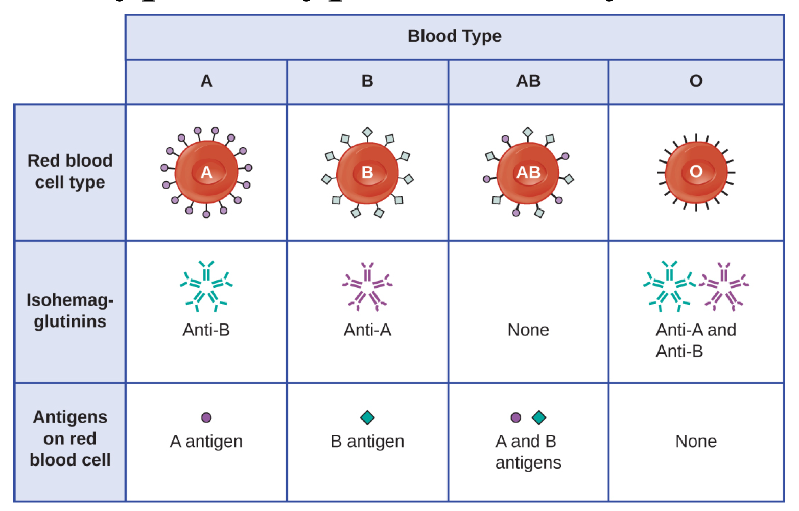 Different blood types present different antigens on red blood cells