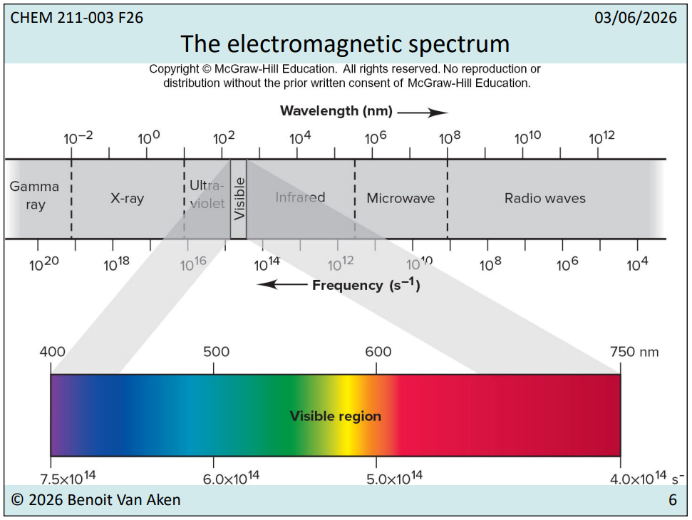 Wavelengths & Frequencies: Explanation of the spectrum ranges, from gamma rays to radio waves, accompanied by corresponding wavelengths in nanometers (nm).