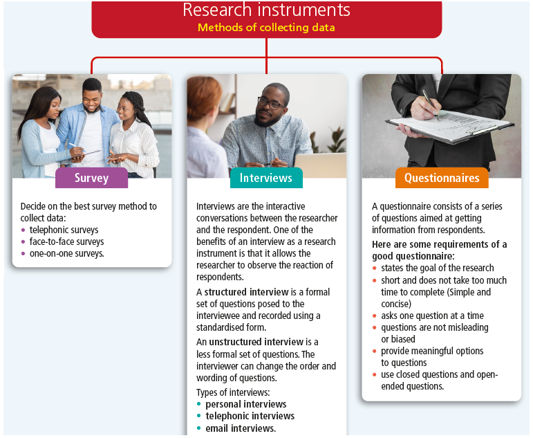 A research instrument is a tool used to collect, measure and analyse data related to a business opportunity. A good research instrument will provide information about a target market.