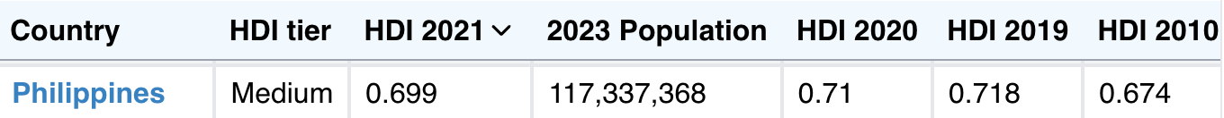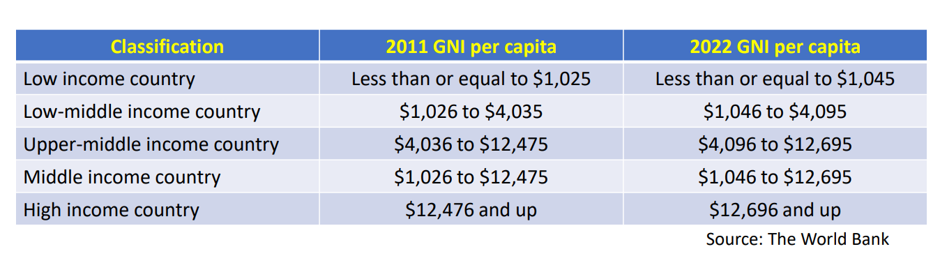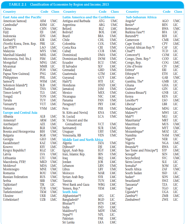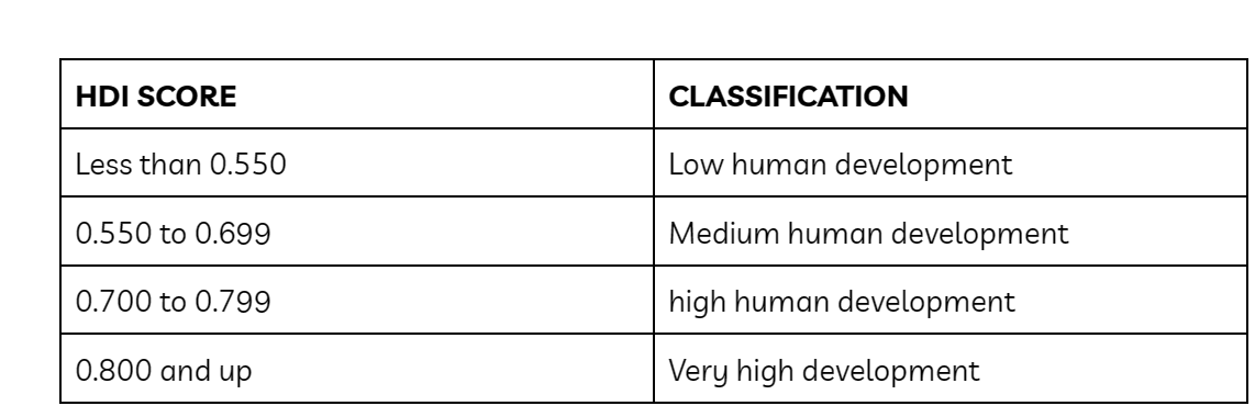 Developing Countries (Less Developed Countries) → low levels of living and development deficits