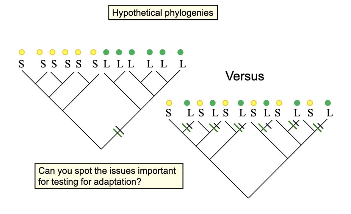 Potential problem: closely related species may resemble one another due to shared inheritance of traits rather than because they experience similar selection pressures