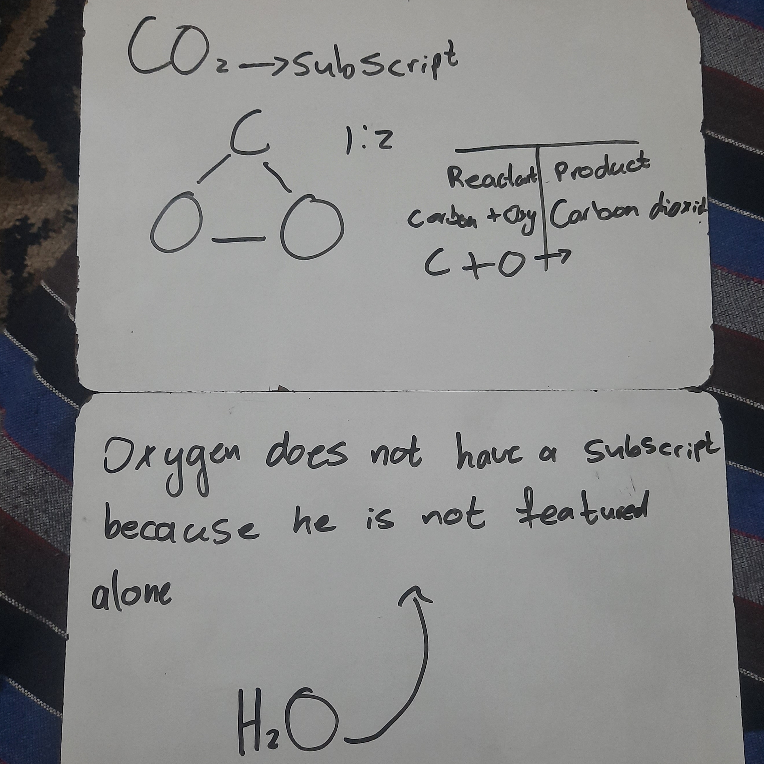 The subscript indicates the “NUMBER OF ATOMS” of the specific element present in the formula. When the number is in front (2H) it indicates the ratio to which elements, compounds or molecules reacts with one another.