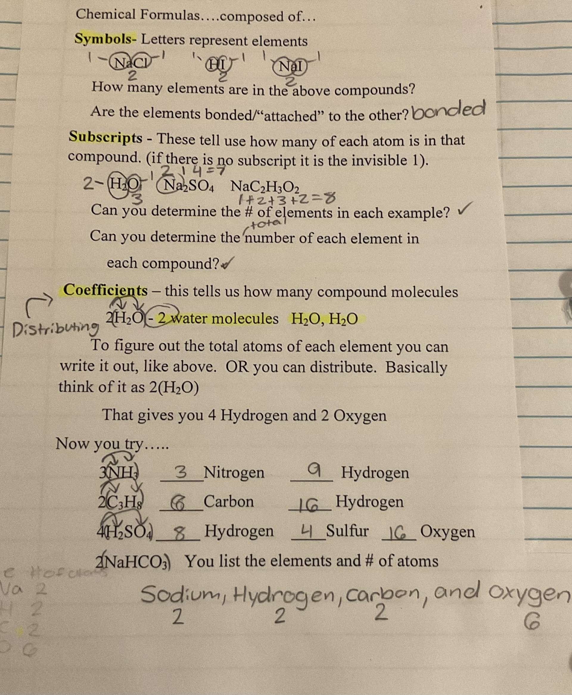 ~ Subscript = number of atoms