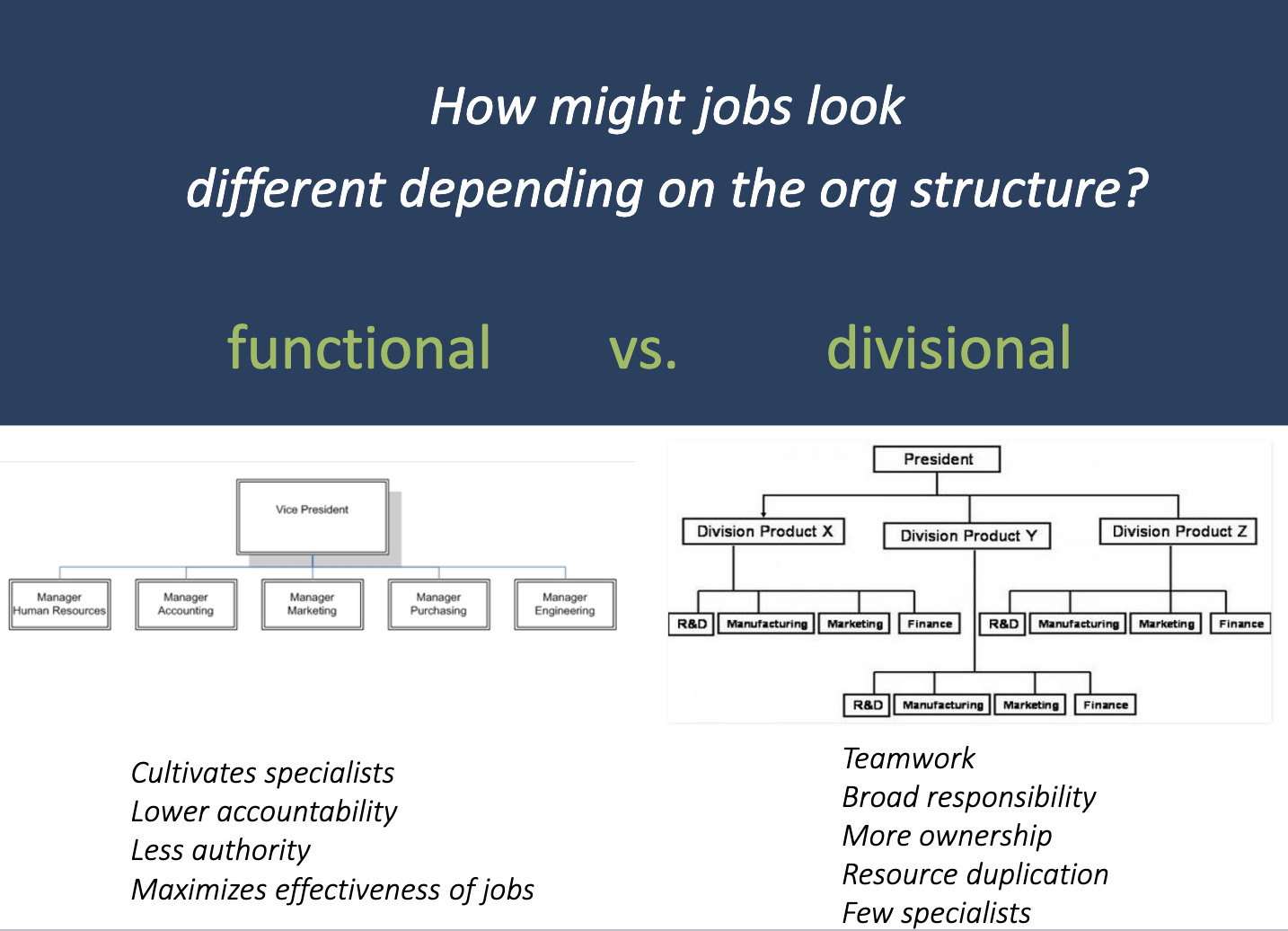 The nature of jobs is related to an organization’s structure (and culture)