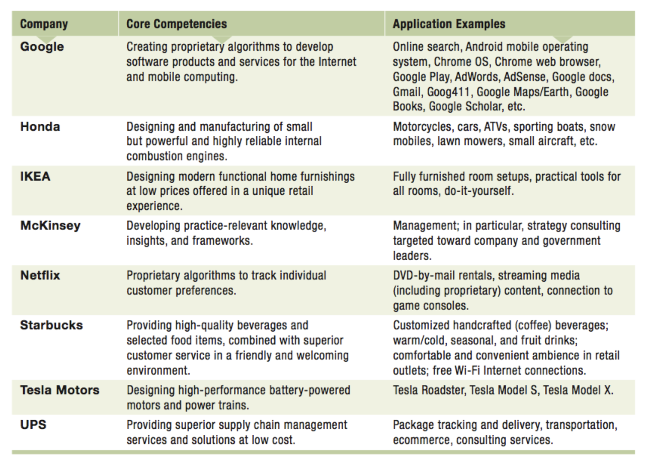 Core competencies differentiate an organization from its competition– they create a company’s competitive advantage in the marketplace