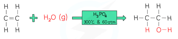 e.g: ethene + water vapour → ethanol