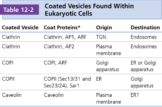 Vesicles require a "coat" of proteins to form and to select the correct cargo for transport. Different coat proteins are associated with specific pathways and directions of movement.