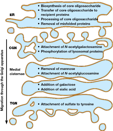 Medial cisternae → Middle region with distinct enzymes