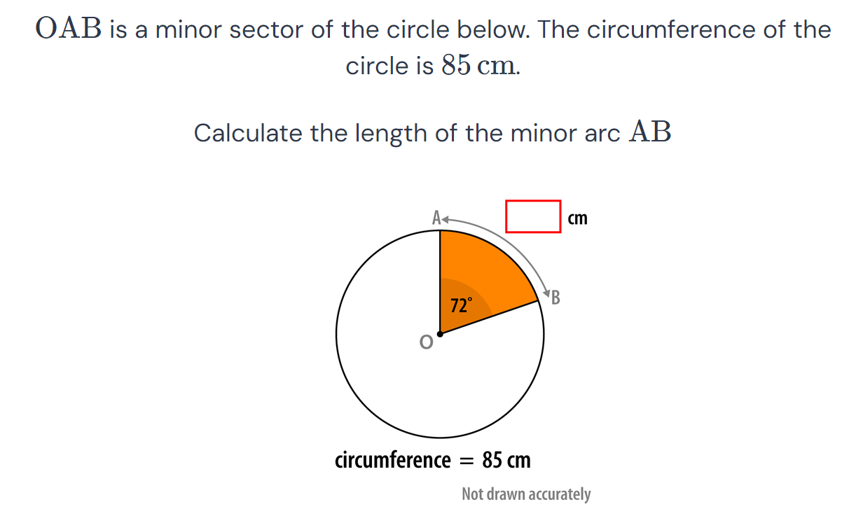 length = fraction of circle x circumference
