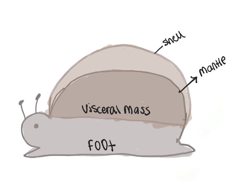 The visceral mass is the main central part of the body. It has most of the internal organs