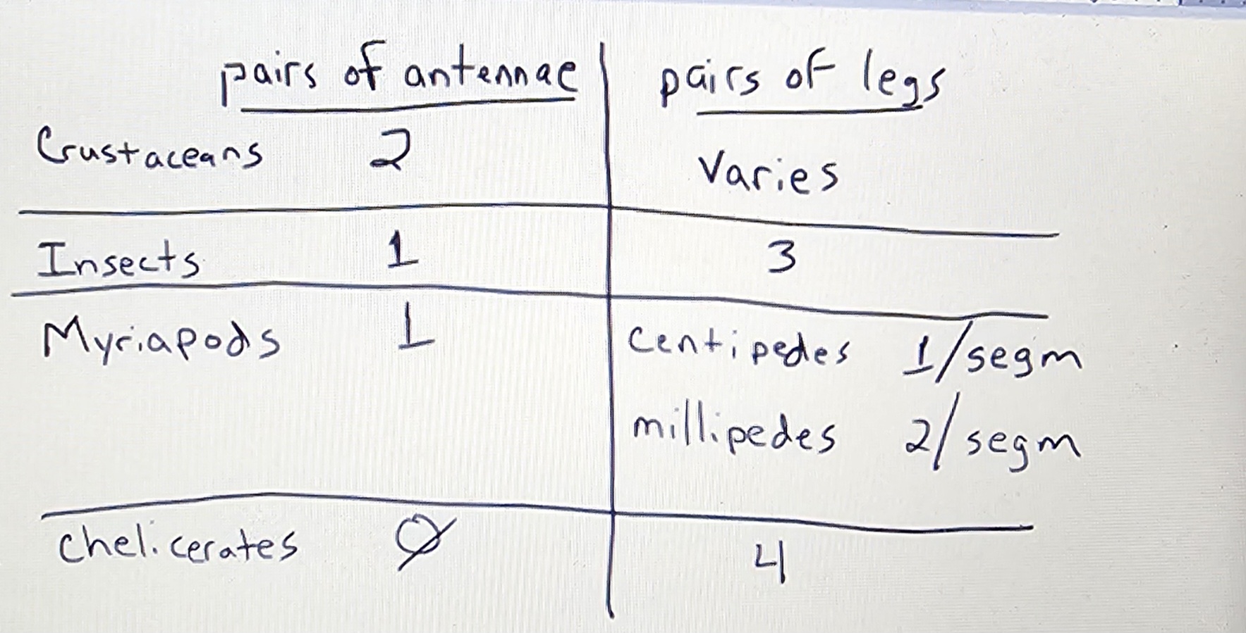One way to distinguish the arthropod groups is to count the pairs of antennae: