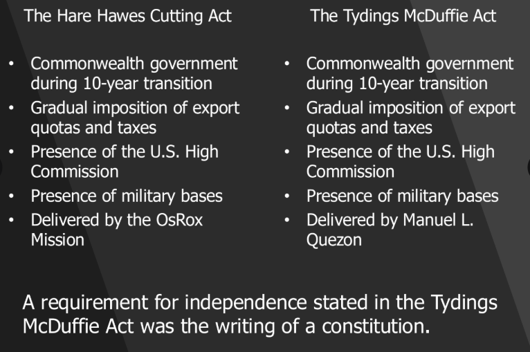 One of the requirements of the Tydings-McDuffie Act was the drafting of a Philippine constitution. A constitutional convention led to the 1935 Constitution
