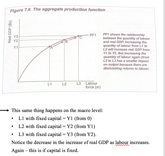 If the quantity of labour increases then real GDP will increase - movement along the curve/APF