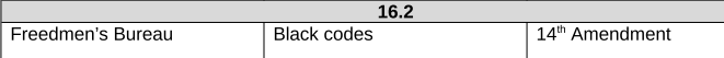Radical Republicans: Advocated for greater rights for freed people, a thorough Reconstruction of the South, believed in the constructive power of the federal government, and championed the Civil Rights Act and the Fourteenth Amendment.
