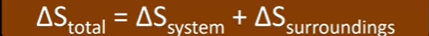 Total entropy change can be calculated using entropy changes of the system and surroundings
