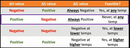 A reaction is feasible if the delta G is negative or zero