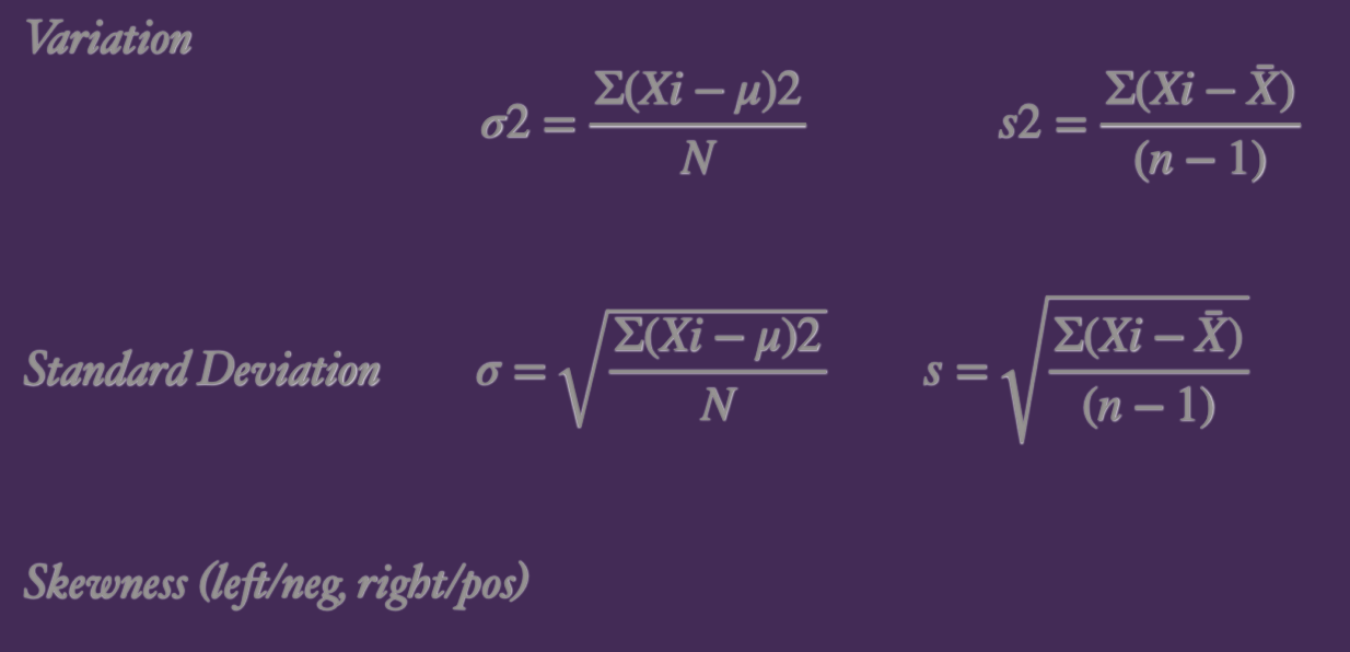 Skewness (le /neg, right/pos)