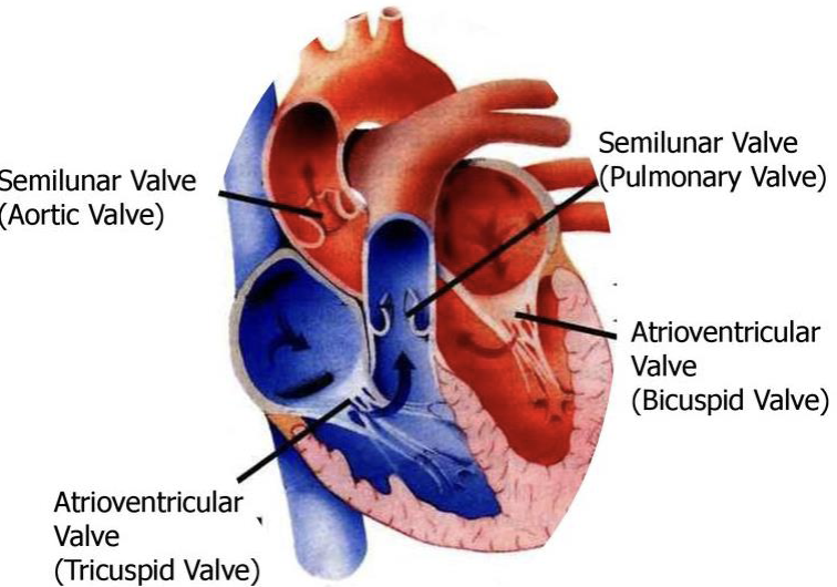 Two atrioventricular (AV) valves separate atria and ventricles.
