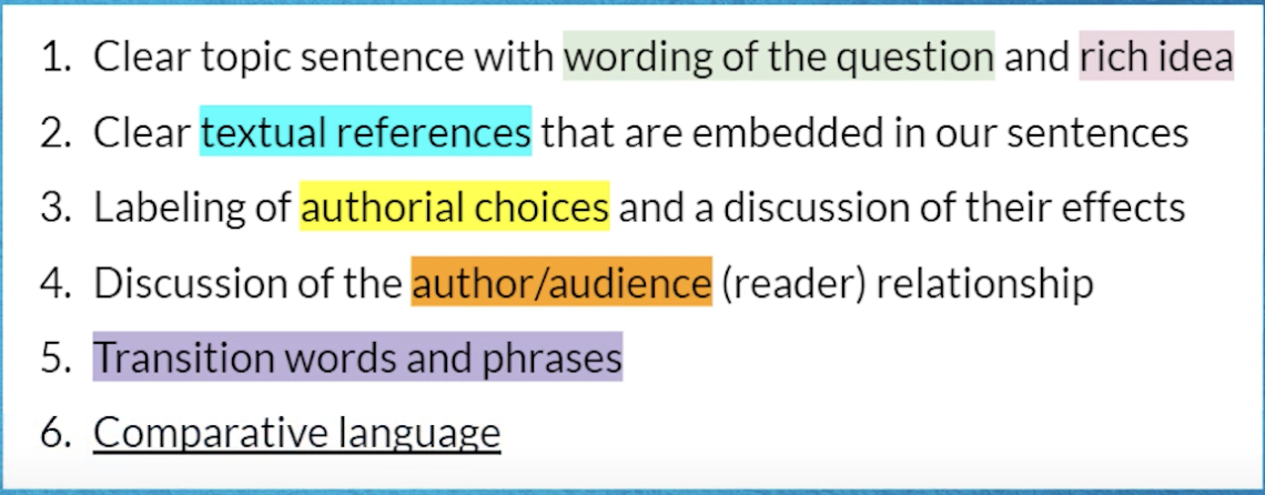 Use clear and focused topic sentences that reference the wording of the question while encompassing rich ideas.