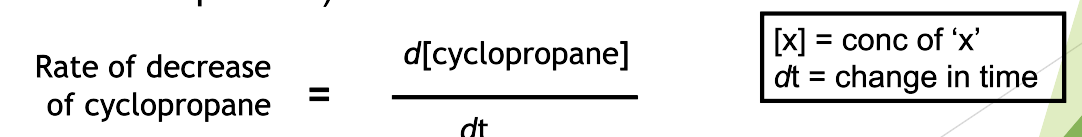 Instead of saying rate ∝[cyclopropane] we can introduce a proportionality constant - k is called a rate constant.