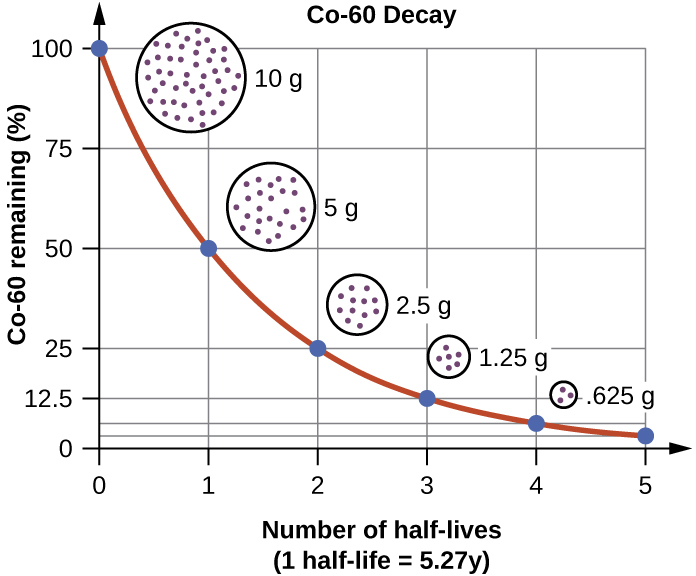 Example of a 10g substance with a 6 year 1/2 life