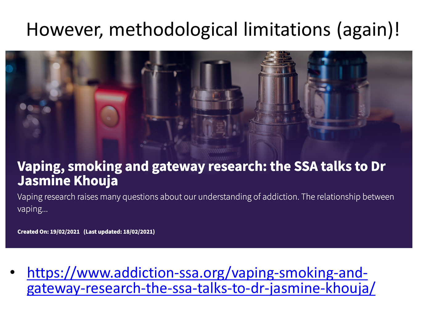 this might have implications for use of e-cigarettes on those that could be trying to stop smoking in the future
