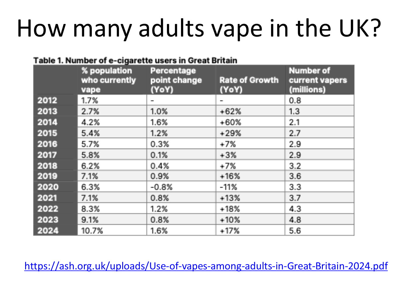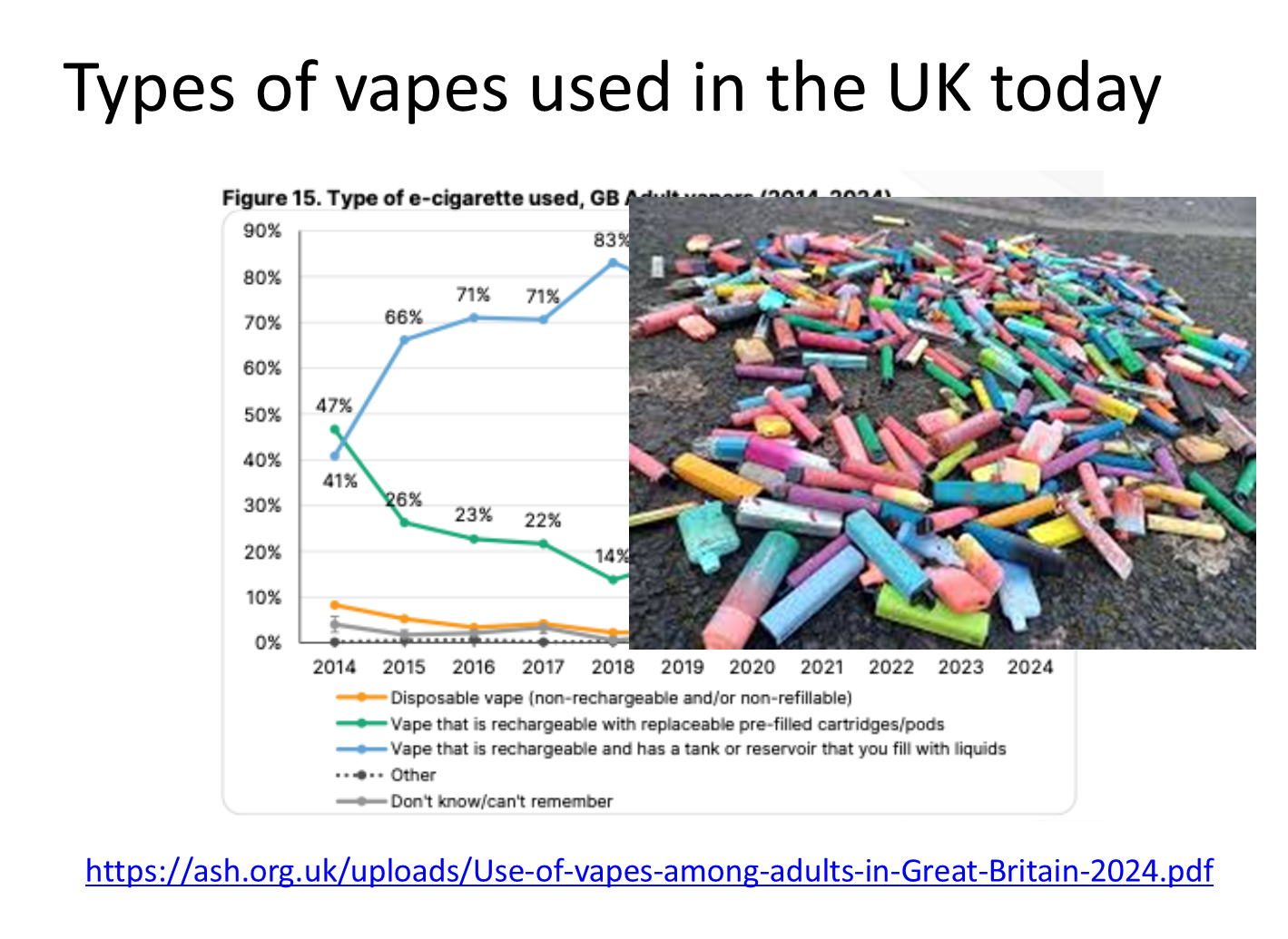 disposable vapes became drastically more popular (lower than 10% in 2014 to 30% in 2024)