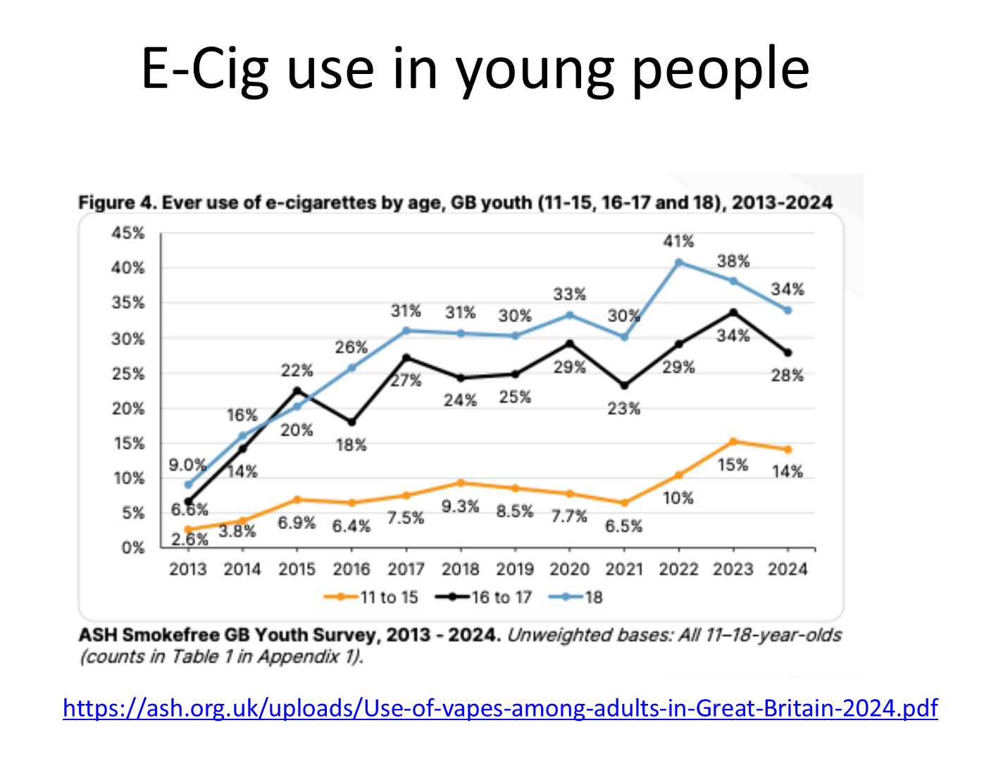 relatively low in 11-15 year olds, but has made a drastic and increasing leap in recent years