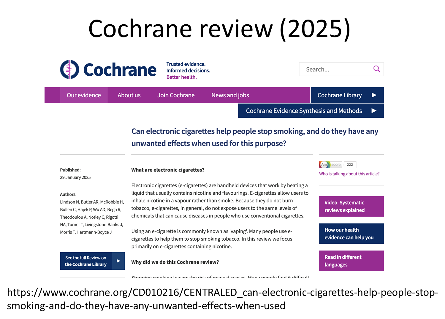 among tobacco smokers who actually start vaping, they do not find any evidence they are less likely to quit