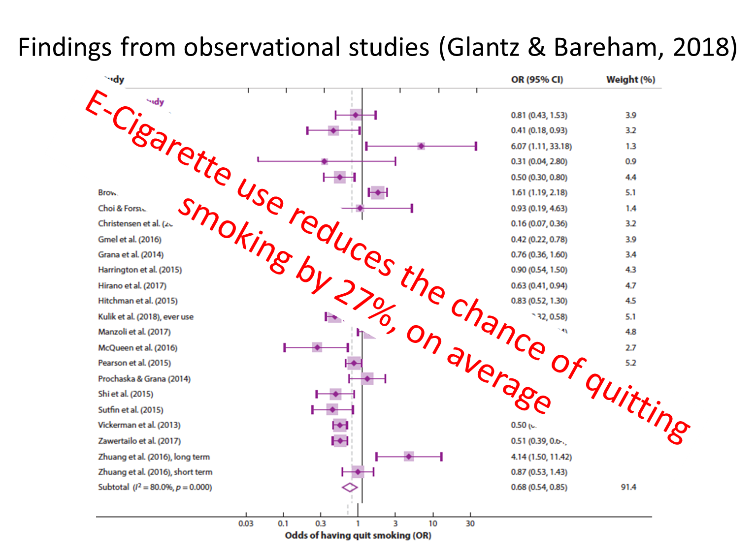 e-cig use reduces the chance of quitting by 27%
